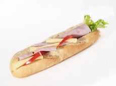 Ost og skinke baguettKr. 70 pr. stk.m/paprika og salat -