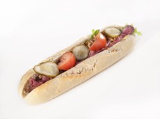 RoastbiffbaguettKr. 70 pr stkm/sprøløk og sylteagurk -