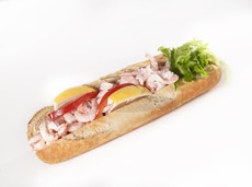 Laks og eggerørebaguettKr. 70 pr stkm/salat -